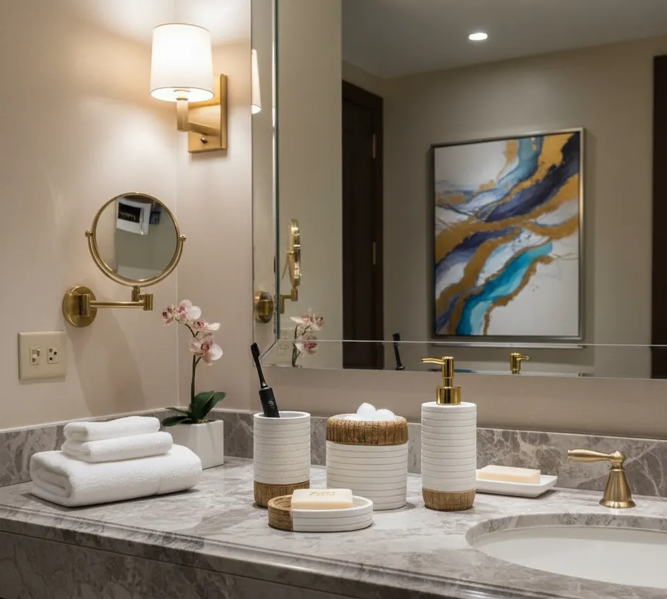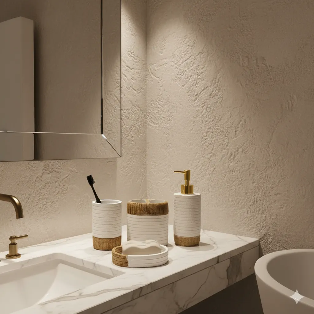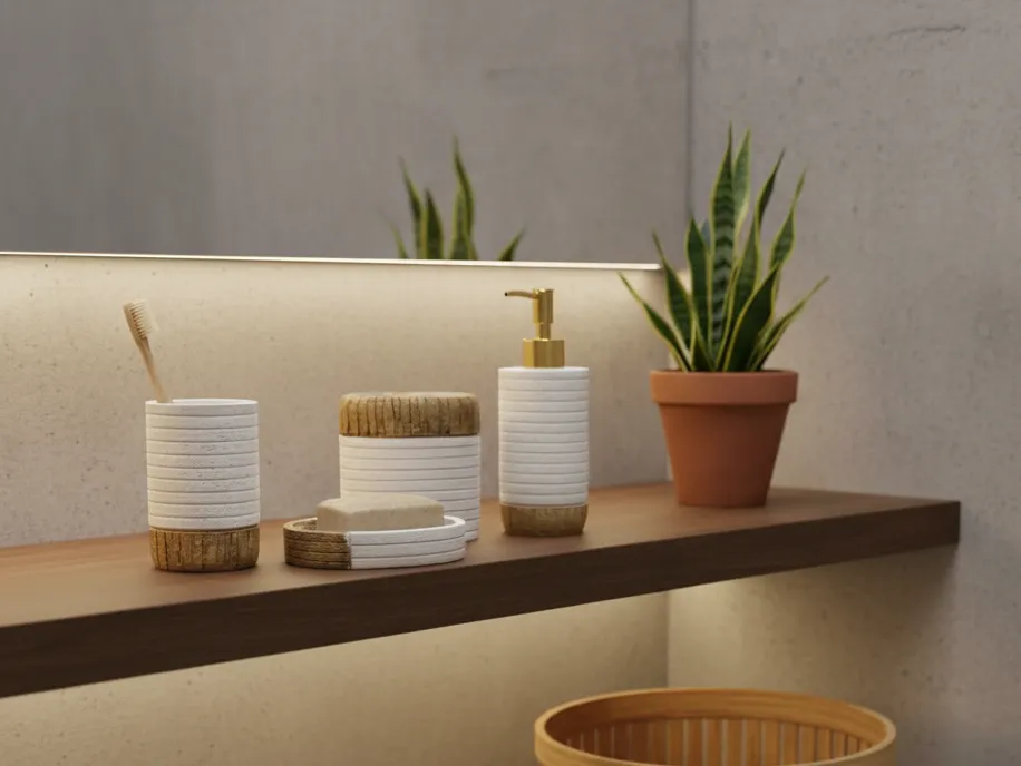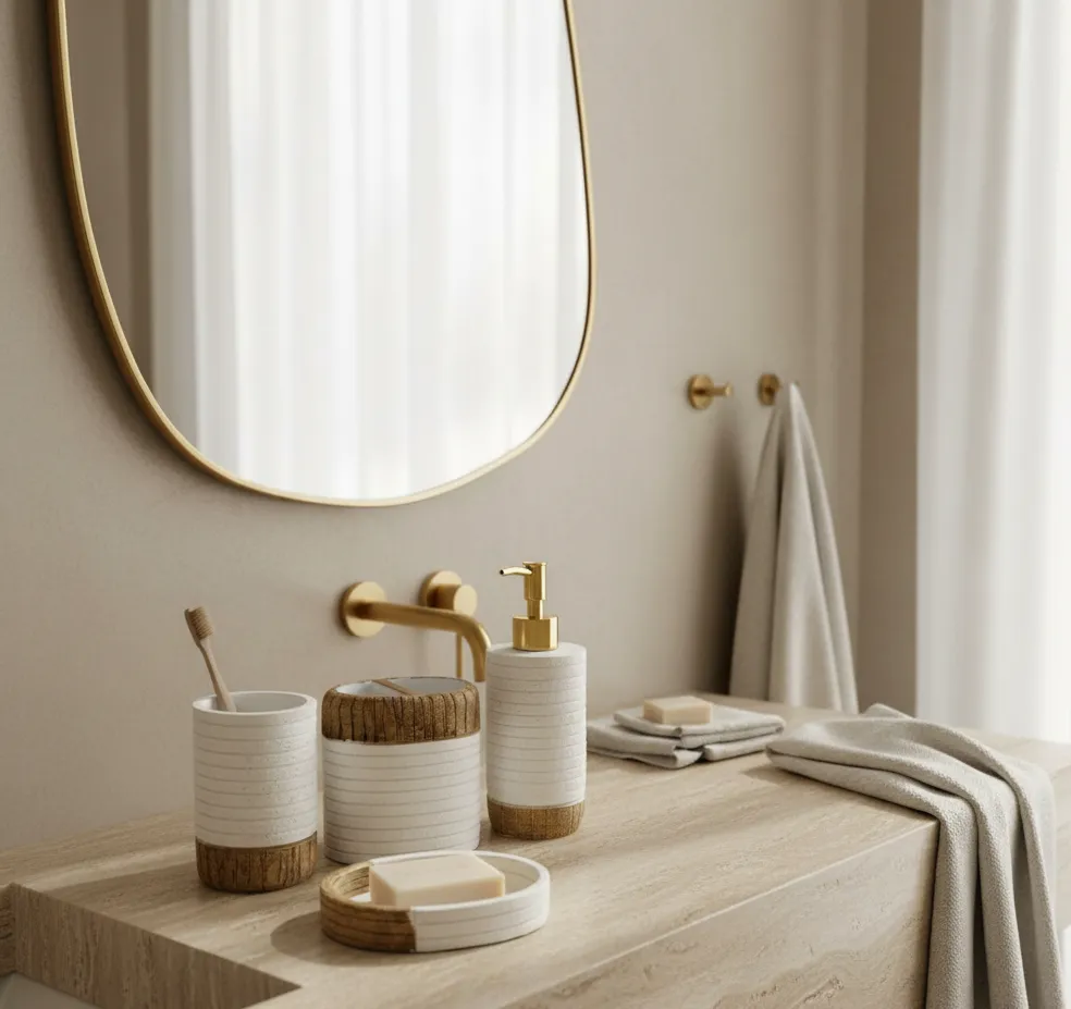 Inspired by European spa interiors, this bath set delivers understated elegance with timeless appeal.