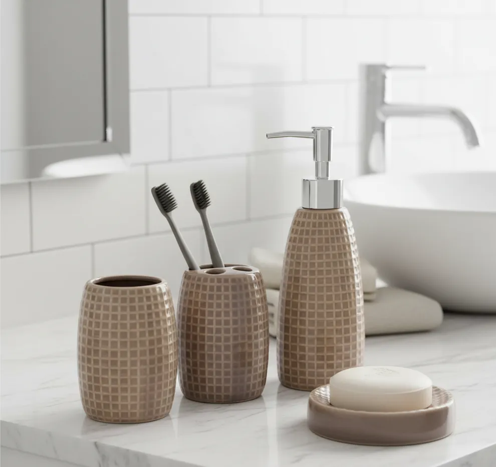 Designer ceramic with grid-pattern relief