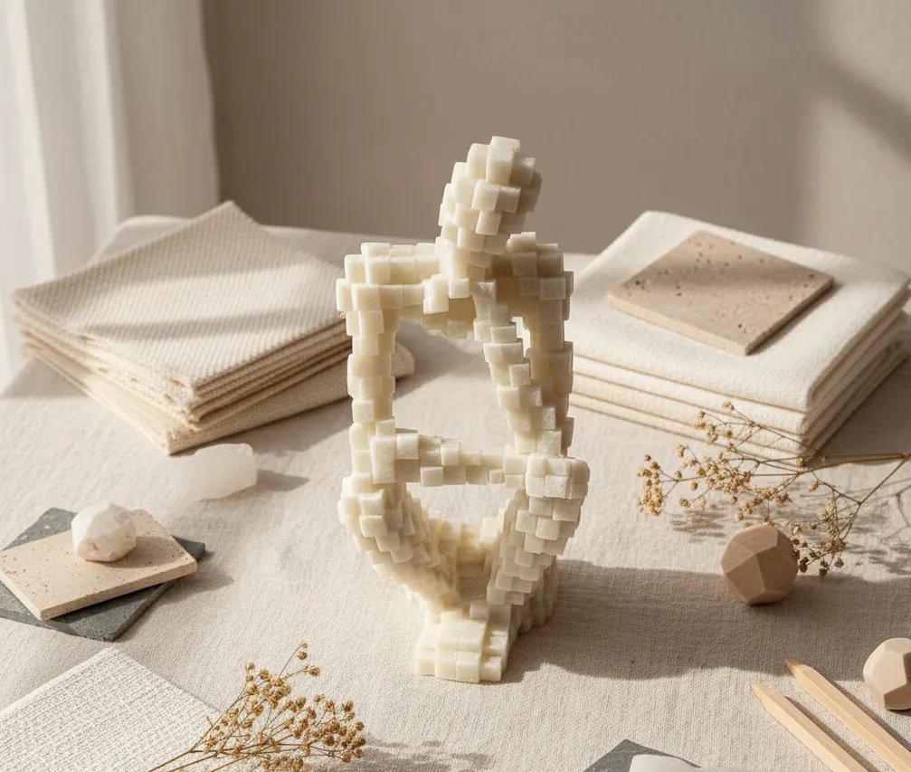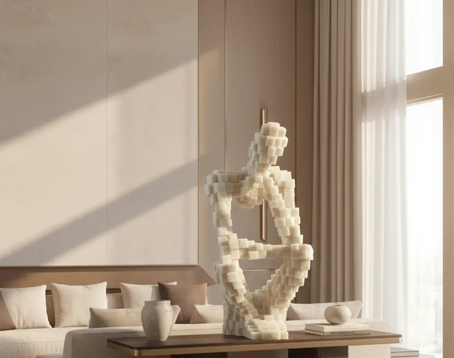 An embodiment of contemporary elegance, this sculptural form merges precision with softness, offering a timeless visual experience in neutral luxury tones.