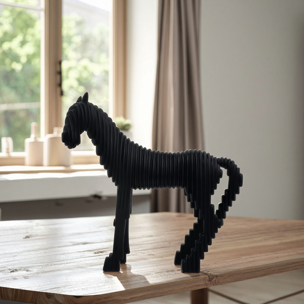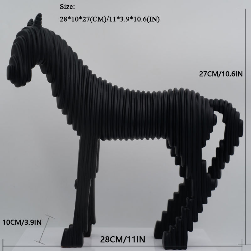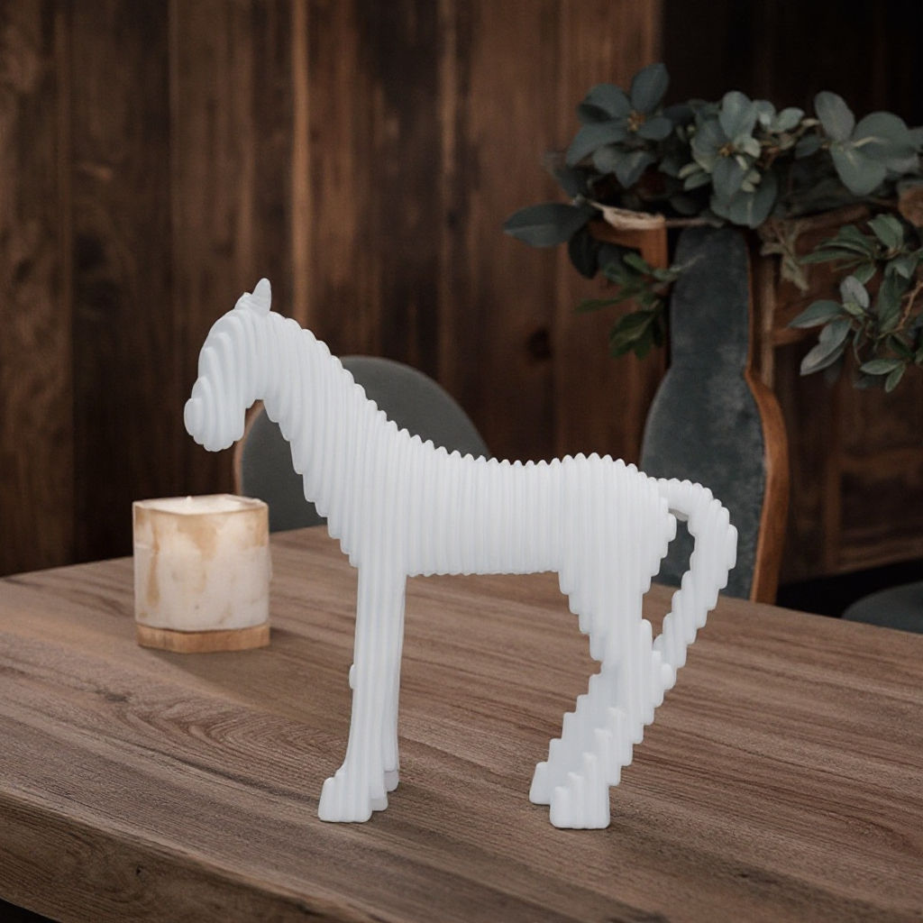 Modern art meets timeless grace in the Eclat Stallion Duo. Sculpted with a contemporary ribbed design in striking black and white contrast, these horses symbolize balance, strength, and sophistication. Perfect for adding a statement of refined luxury to any console, shelf, or workspace.