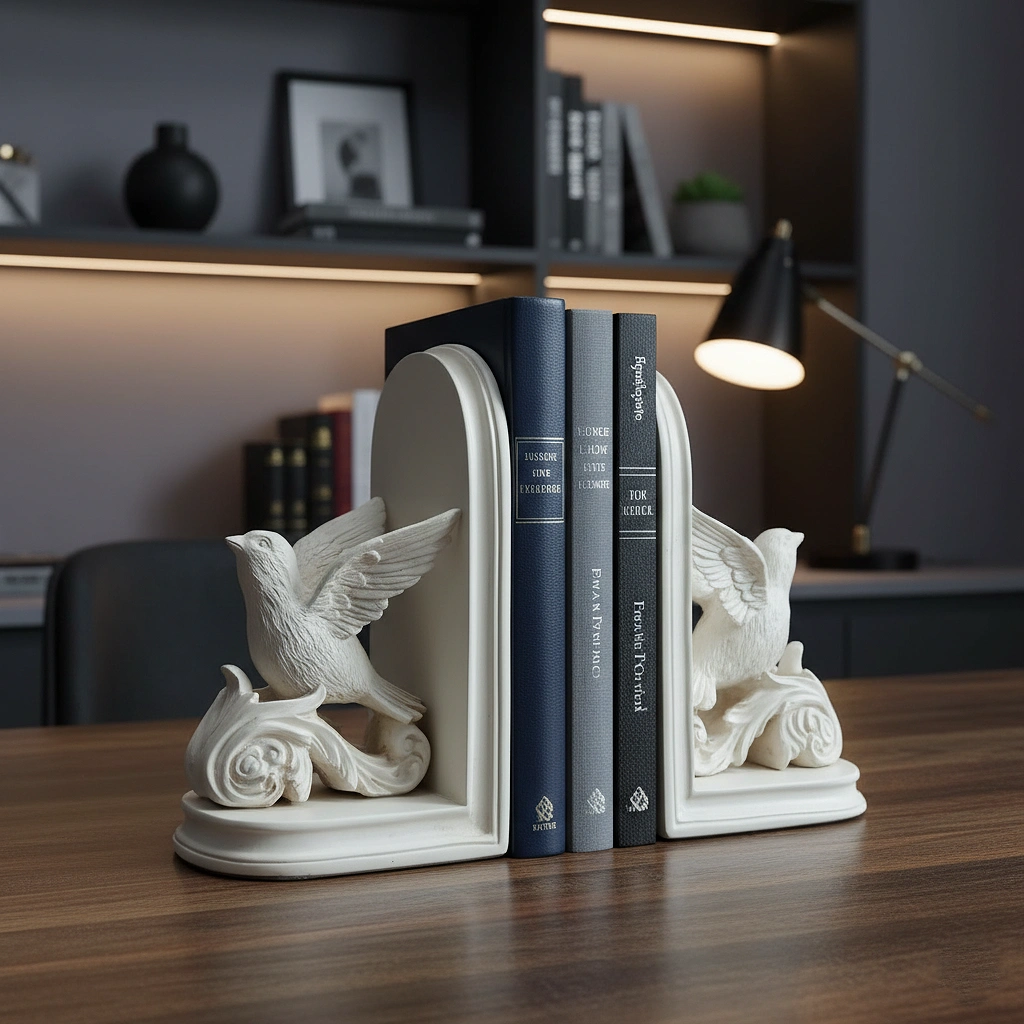 Bring a sense of timeless peace and classical romance to your library with The “Ivory Serenity” Baroque Bookends. This exquisite pair captures the delicate moment of a songbird poised for flight, symbolizing freedom and the elevation of the mind through reading.