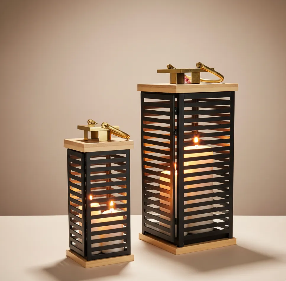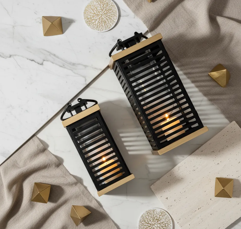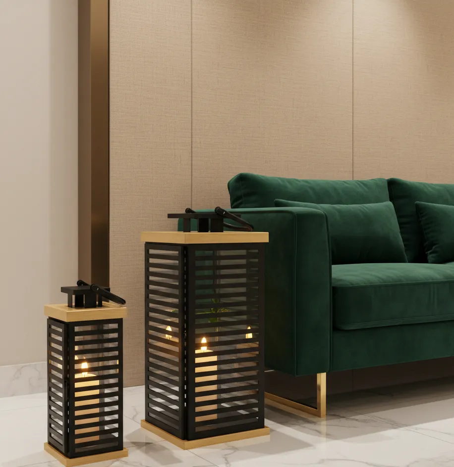 A statement of modern refinement, the Noir Lumière Duo blends bold matte black framing with warm golden accents, creating a captivating glow that transforms any space into a sanctuary of elegance.