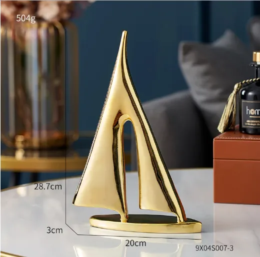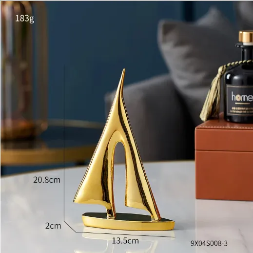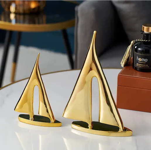 Infuse your office with a nautical touch to inspire creativity and focus. The Modern Golden Sailboat Brass Ornaments serve as a reminder of smooth sailing and success, making them ideal for your workspace.