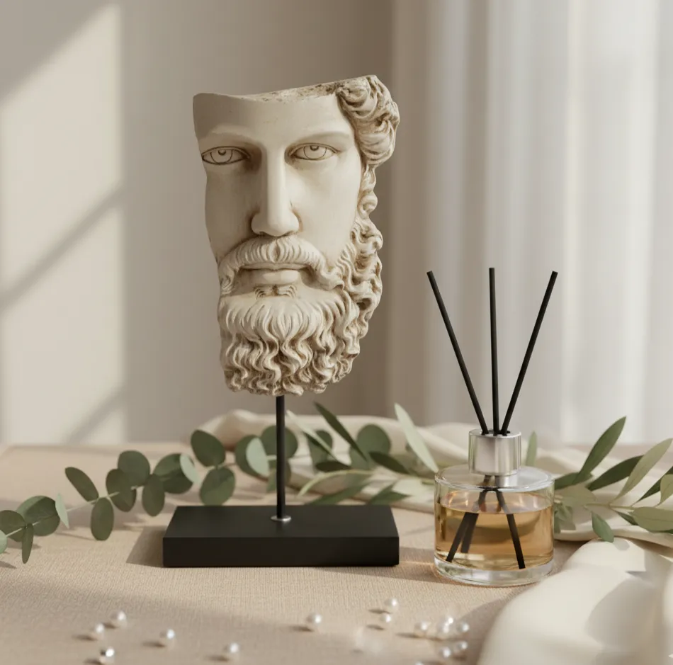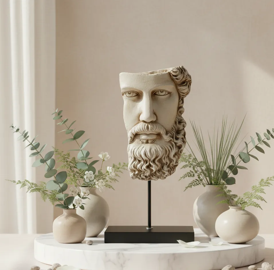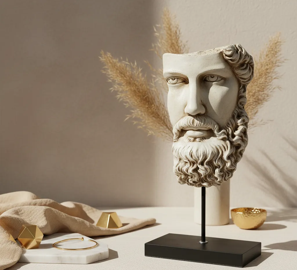 A refined artistic relic capturing the essence of ancient gods, styled for contemporary luxury living.
