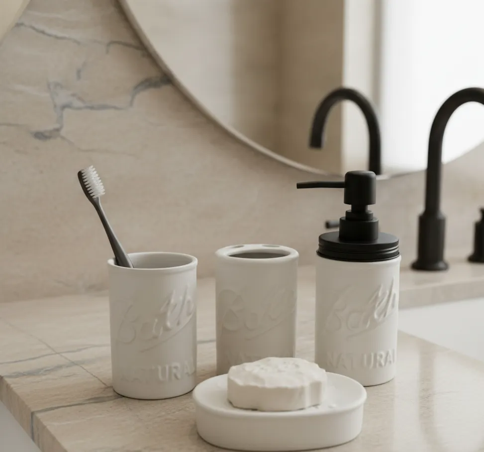 High-gloss ceramic with soft embossed accents