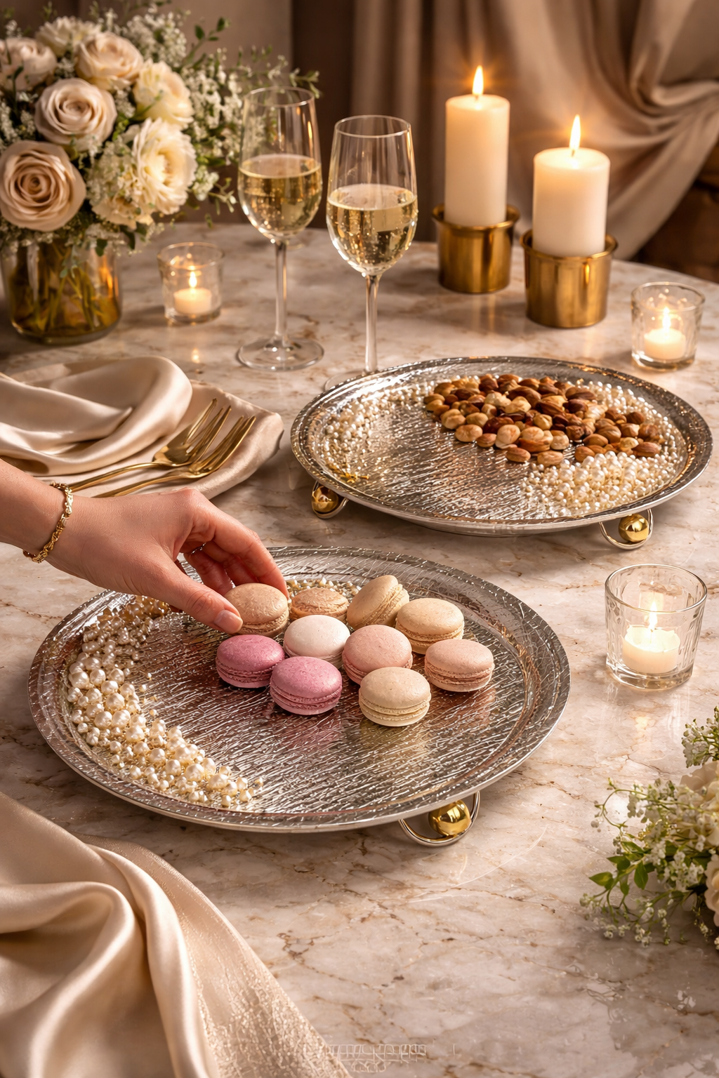 Perfect for luxury hosting, these trays bring warmth, glow, and sophistication to every gathering.