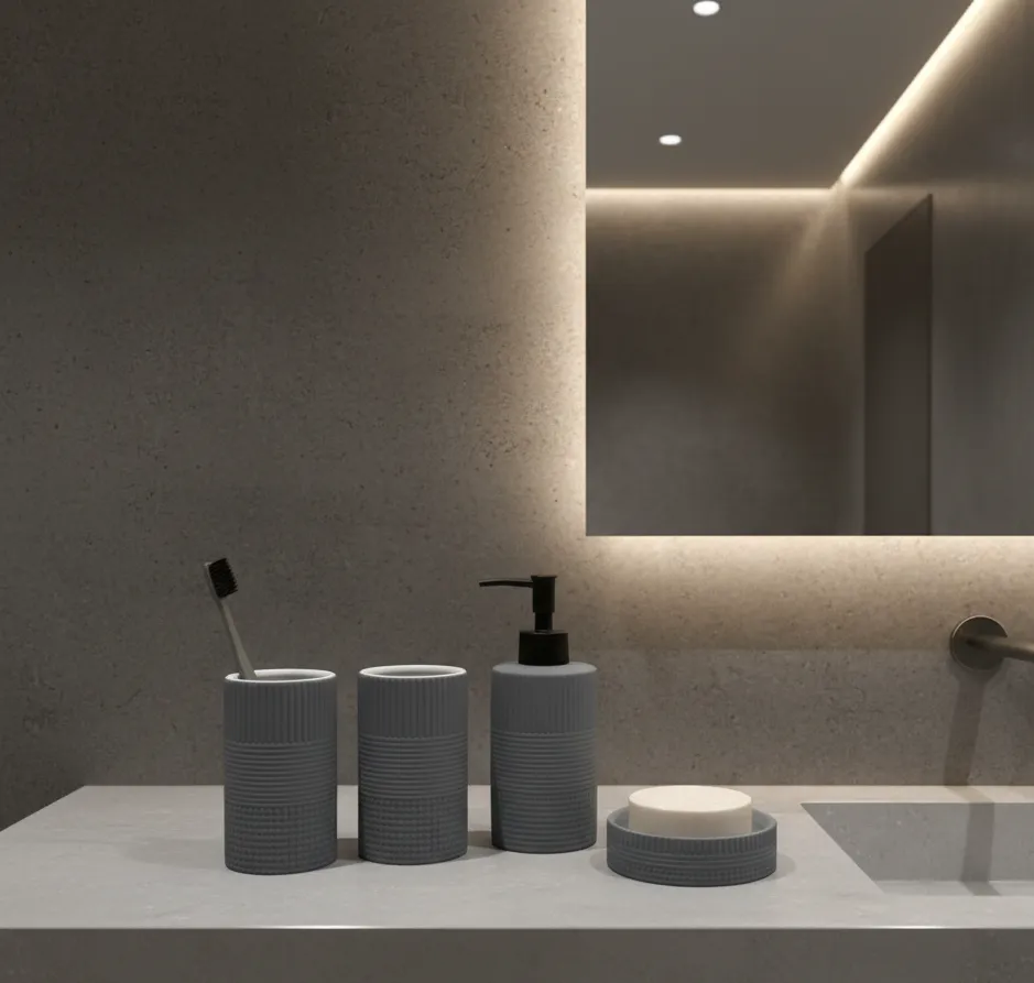 Sédona captures the quiet elegance of natural stone in a refined slate-grey ceramic form. With its sculptural texture and muted tone, this collection brings a sense of calm, balance, and spa-inspired luxury to modern bathrooms.