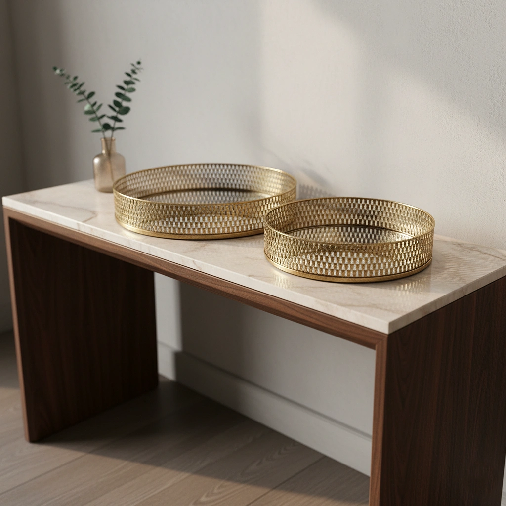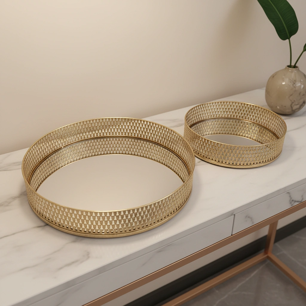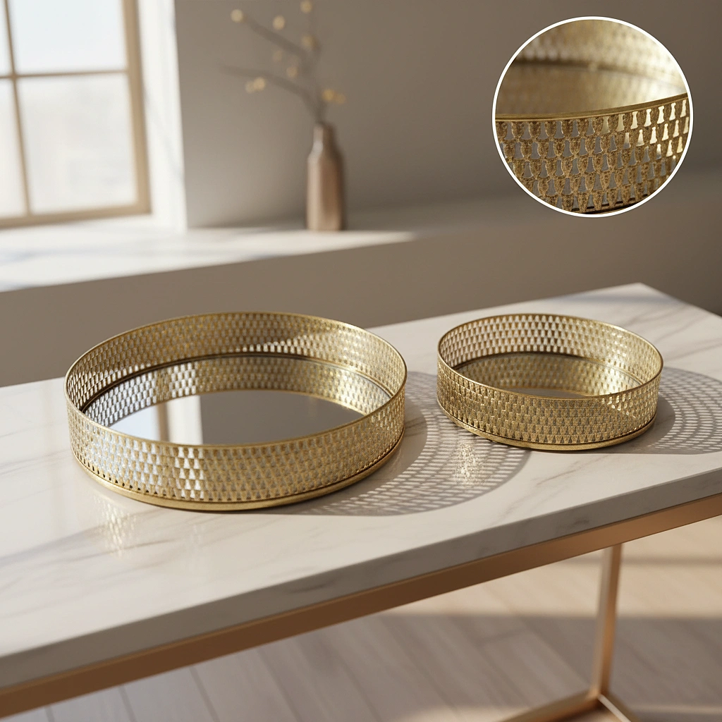 From serving as a sophisticated centerpiece on a dining table to organizing skincare on a marble vanity, these trays act as a luminous foundation for an elegant lifestyle.