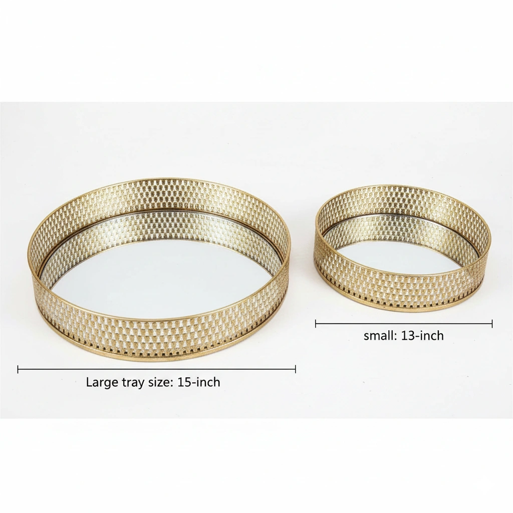 Infuse your home with the warm, captivating glow of The Lyra Burnished Lattice Mirror Tray Set. A masterclass in textural design, this duo is perfect for those who seek to balance old-world charm with high-end modern styling.